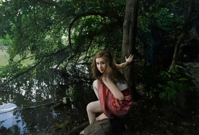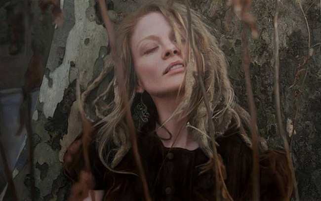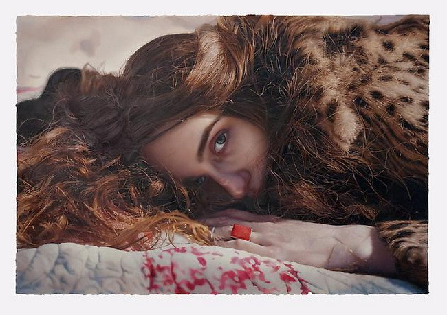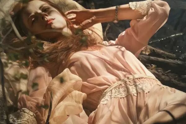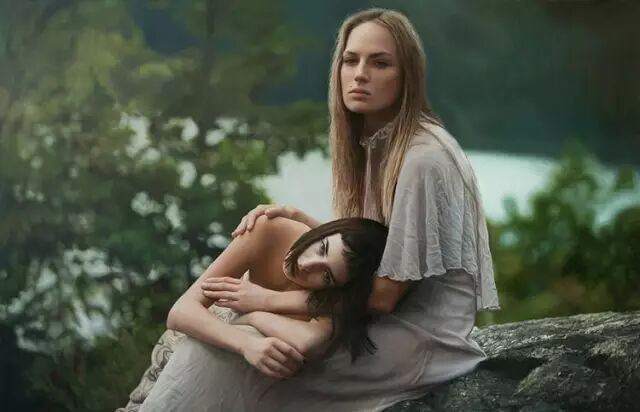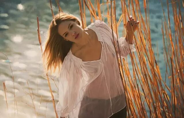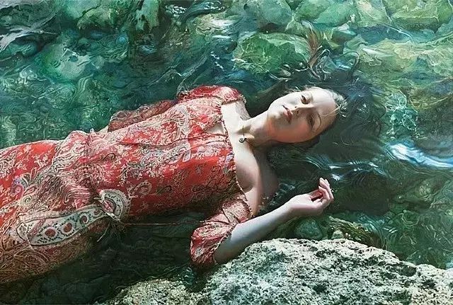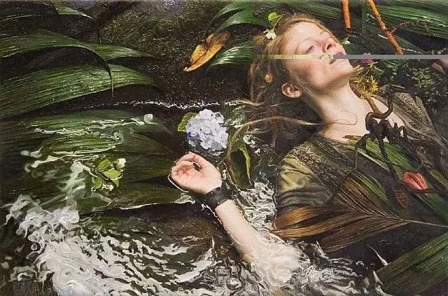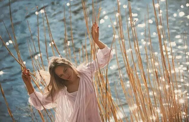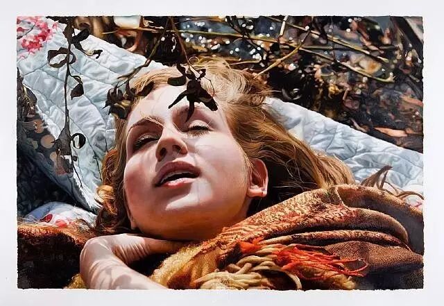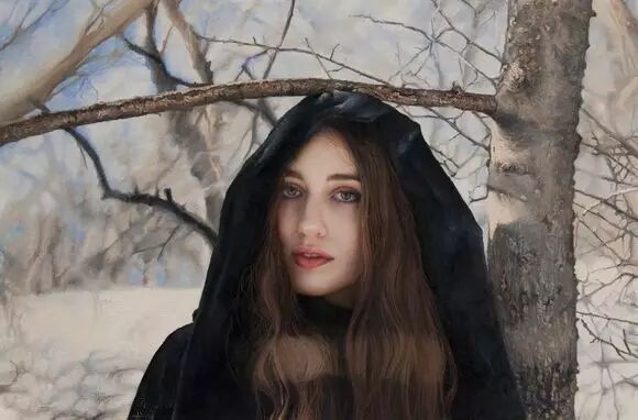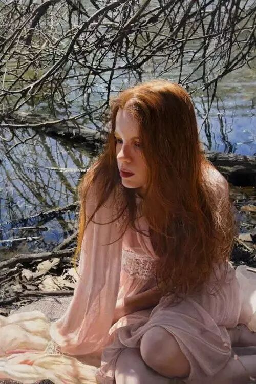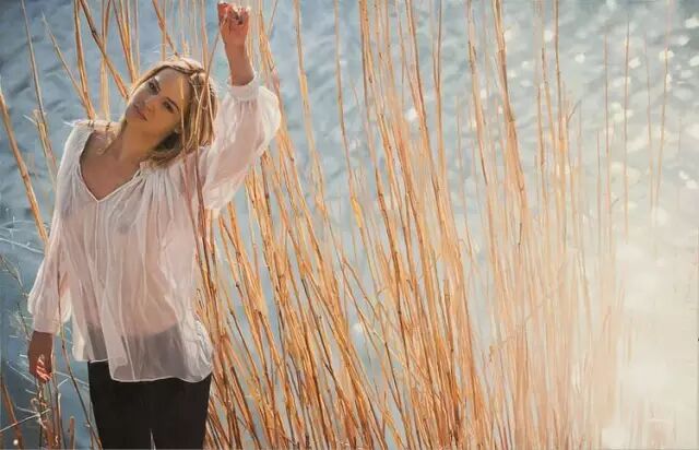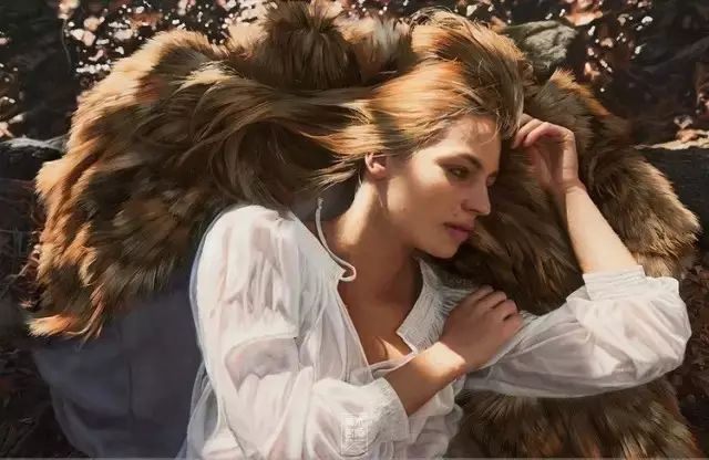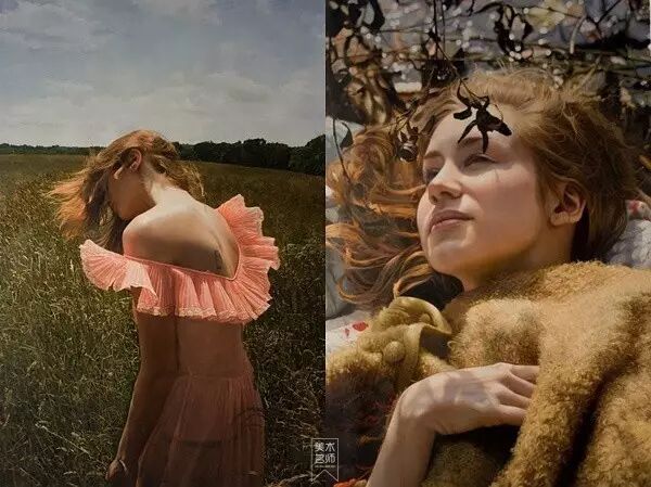 伊戈尔的创作灵感来自于英国19世纪前拉斐尔派的自然艺术。他先以自然为背景给模特们拍好照片,然后,仿照照片,运用高度写实的技艺将美人图景再创作,最终,得到一幅幅炉火纯青的作品。细腻的画作浑然一体,根本辨不出一笔一划。画面中轻熟女子,娇柔优雅,如梦如幻。