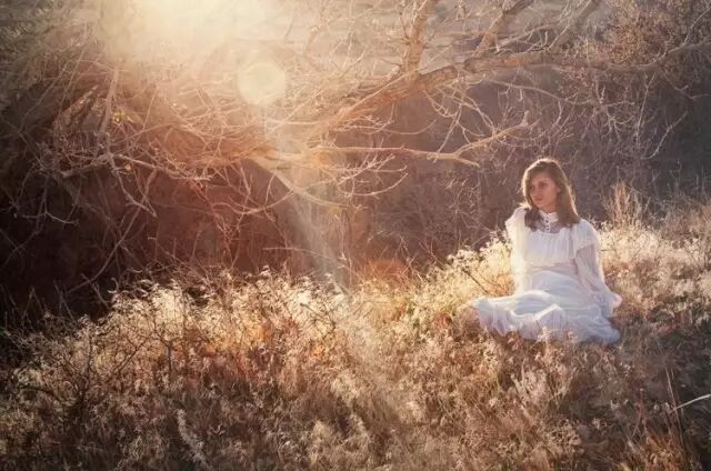 少女空靈的眼神與大自然交相輝映