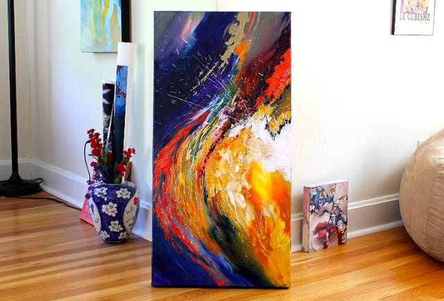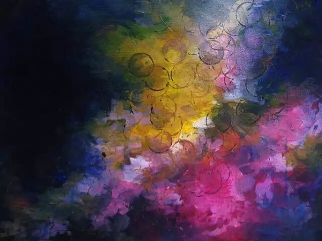 用丙烯颜料在画布上尽情地展现出来。